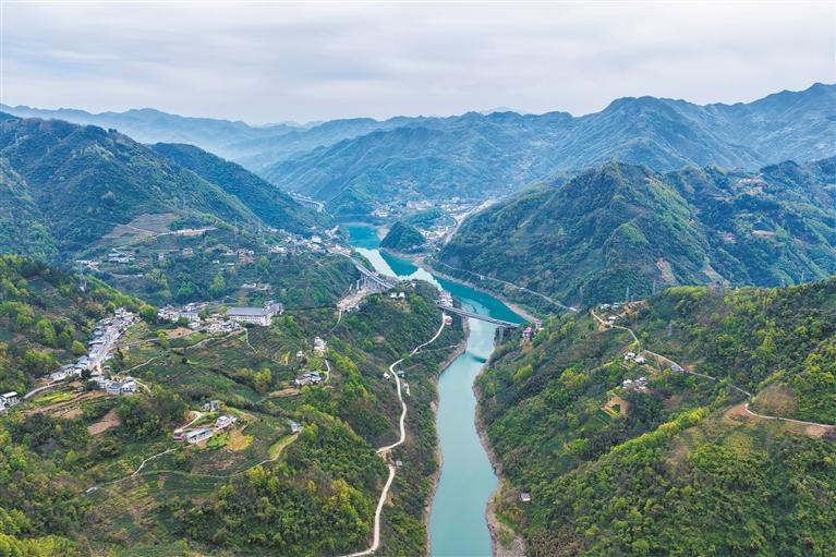 紫阳县焕古镇是“中国名茶之乡”核心产区,具有高海拔、多云雾、土壤硒含量高的独特生态,可孕育出香高、味醇的紫阳富硒茶。图为汉江两岸的茶园(4月3日摄)。