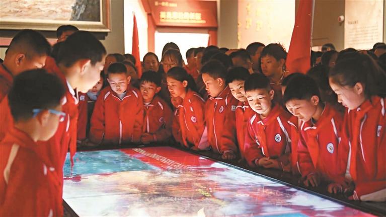 4月5日,吴起县城关小学全体少先队员参加清明祭英烈主题活动,缅怀革命先烈丰功伟绩,传承红色基因,厚植家国情怀。图为学生在中央红军长征胜利纪念馆参观。 本报通讯员 齐玉摄