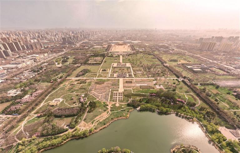 3月28日,西安市大明宫国家遗址公园(无人机照片)。