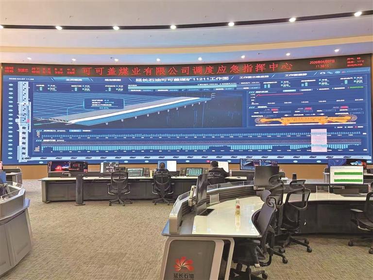 延长石油可可盖煤矿调度应急指挥中心(4月7日摄)。
