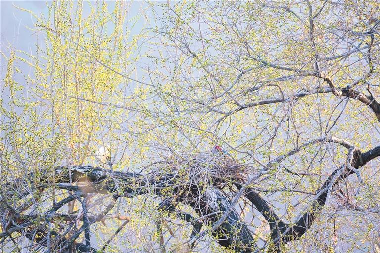 3月28日,商洛市商州区牧护关镇大商塬村附近的朱鹮正在孵卵(资料照片)。 本报通讯员 石强摄