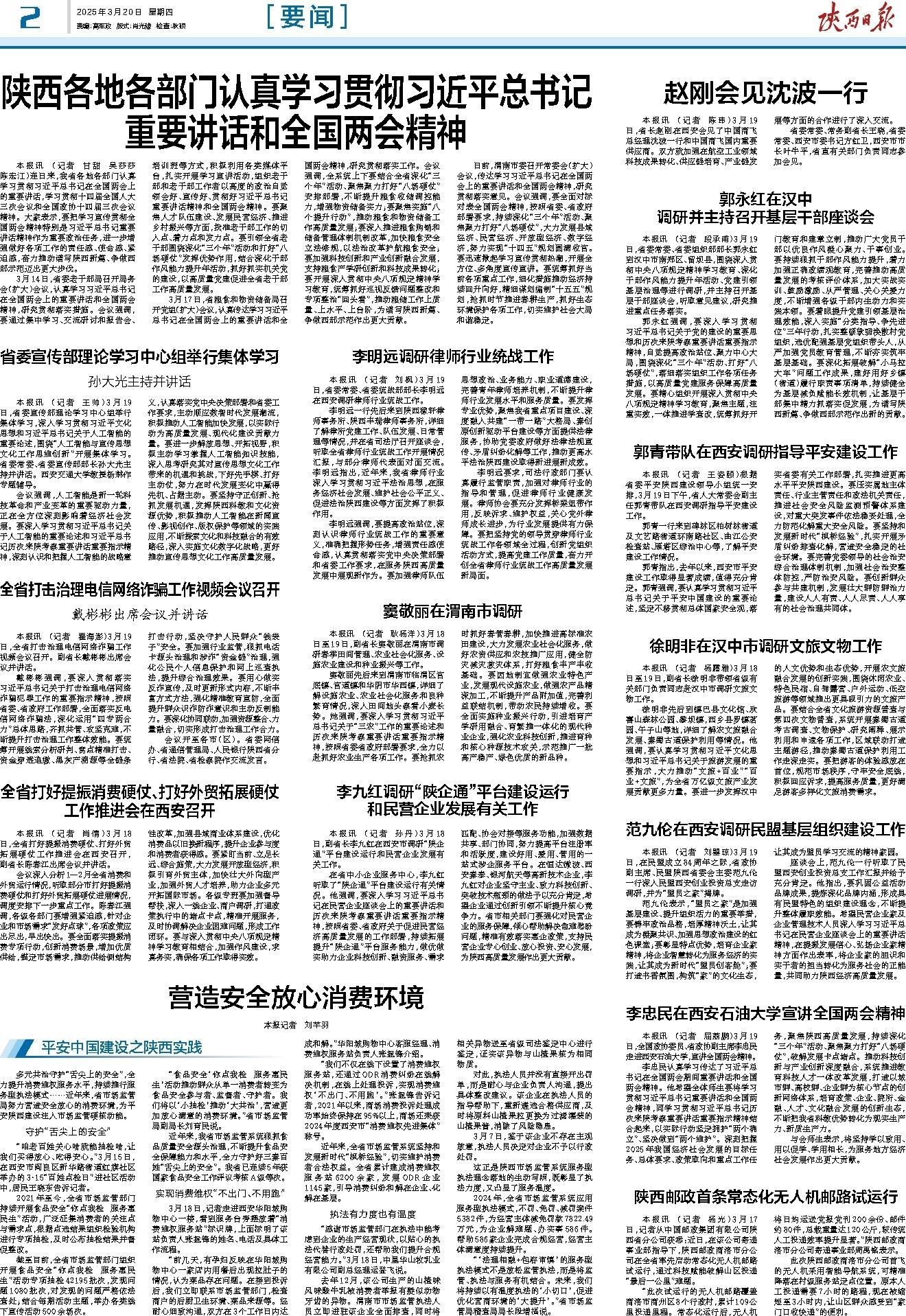 陕西各地各部门认真学习贯彻习近平总书记重要讲话和全国两会精神