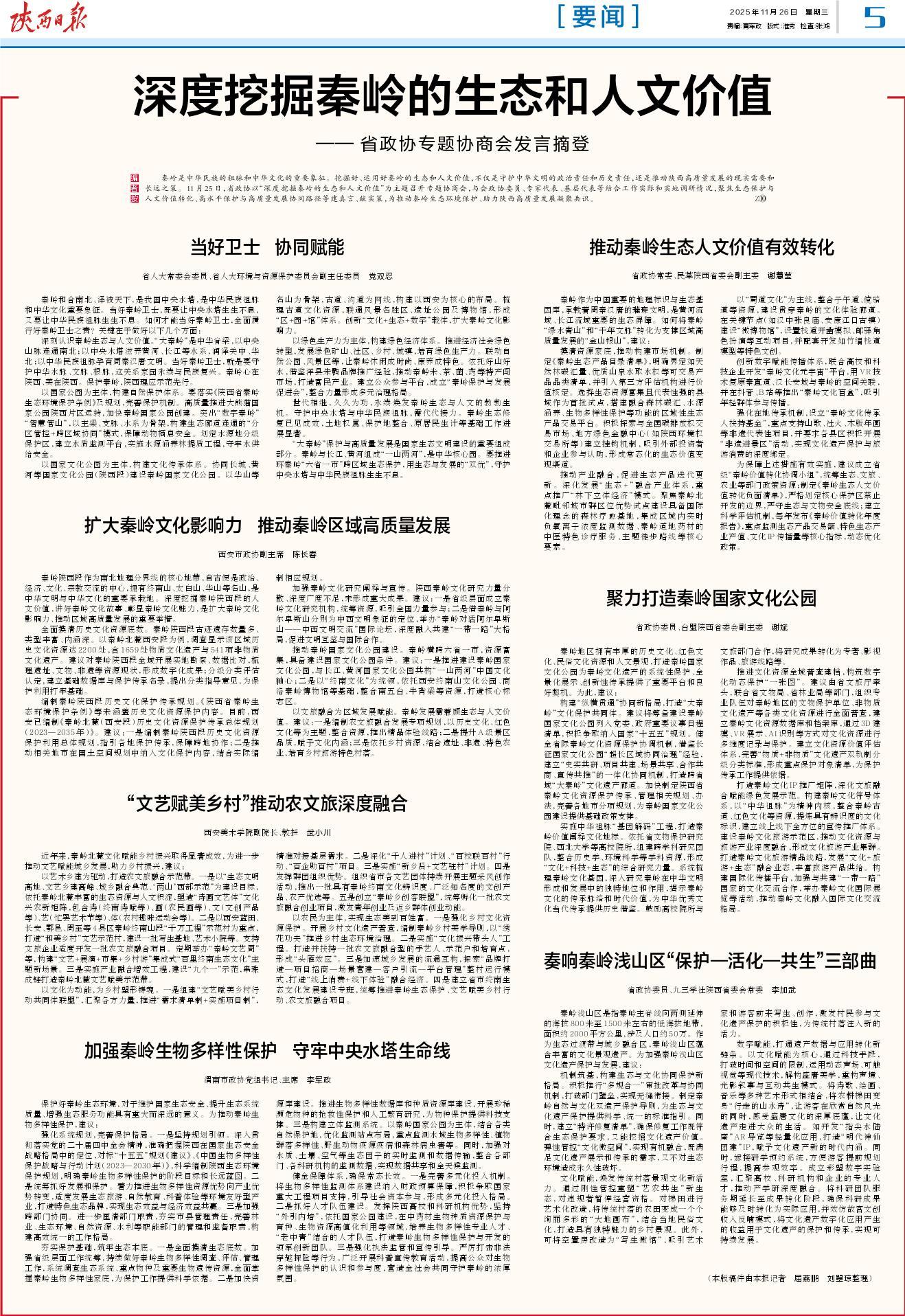 省政协召开“深度挖掘秦岭的生态和人文价值”专题协商会