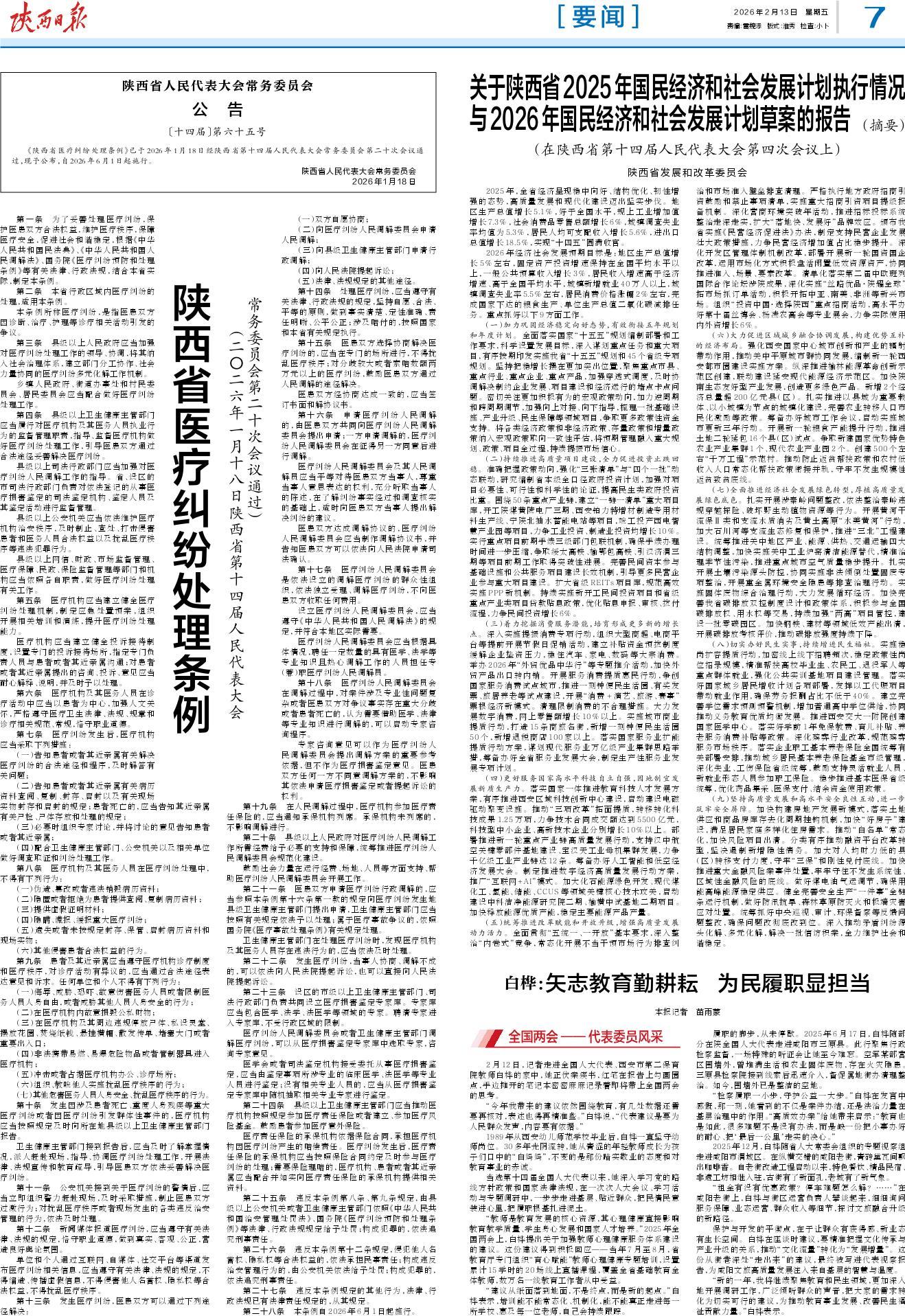 关于陕西省2025年国民经济和社会发展计划执行情况与2026年国民经济和社会发展计划草案的报告(摘要)