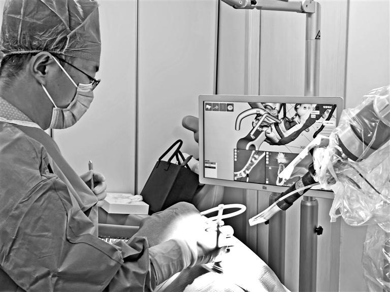 专家使用手术机器人进行种植牙手术。