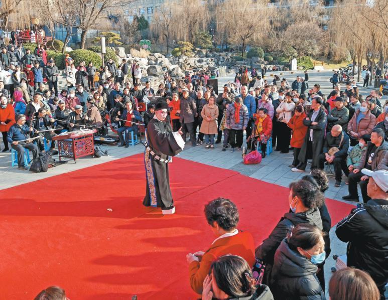2月4日,在西安曲江寒窑遗址公园“新春园游会”活动上,精彩的秦腔表演吸引了众多戏迷和群众驻足欣赏。 本报记者 母家亮摄