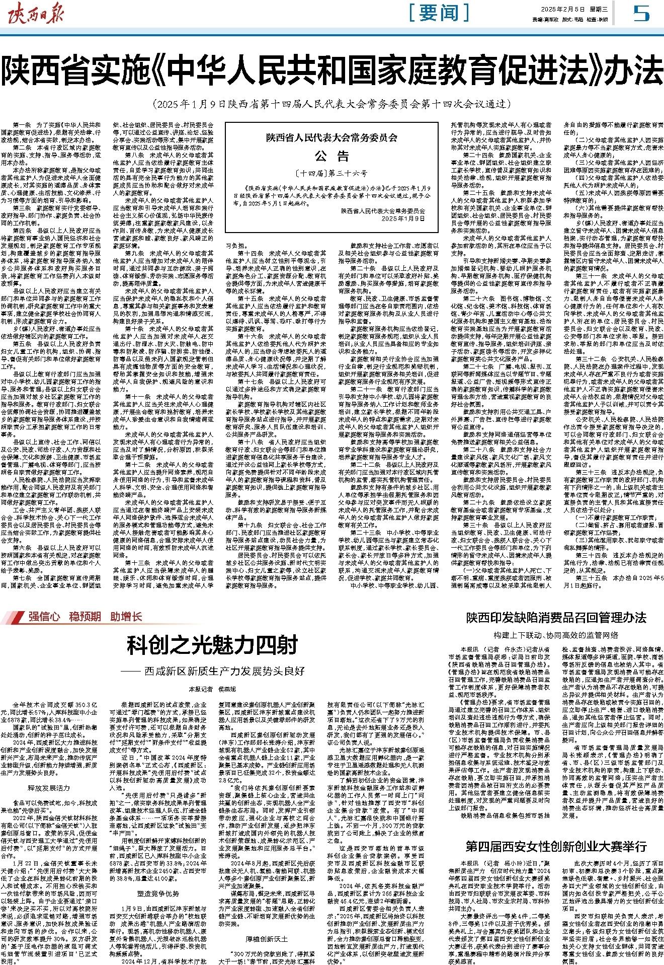 《陕西省实施〈中华人民共和国家庭教育促进法〉办法》已于2025年1月9日经陕西省第十四届人民代表大会常务委员会第十四次会议通过,现予公布,自2025年5月1日起施行。