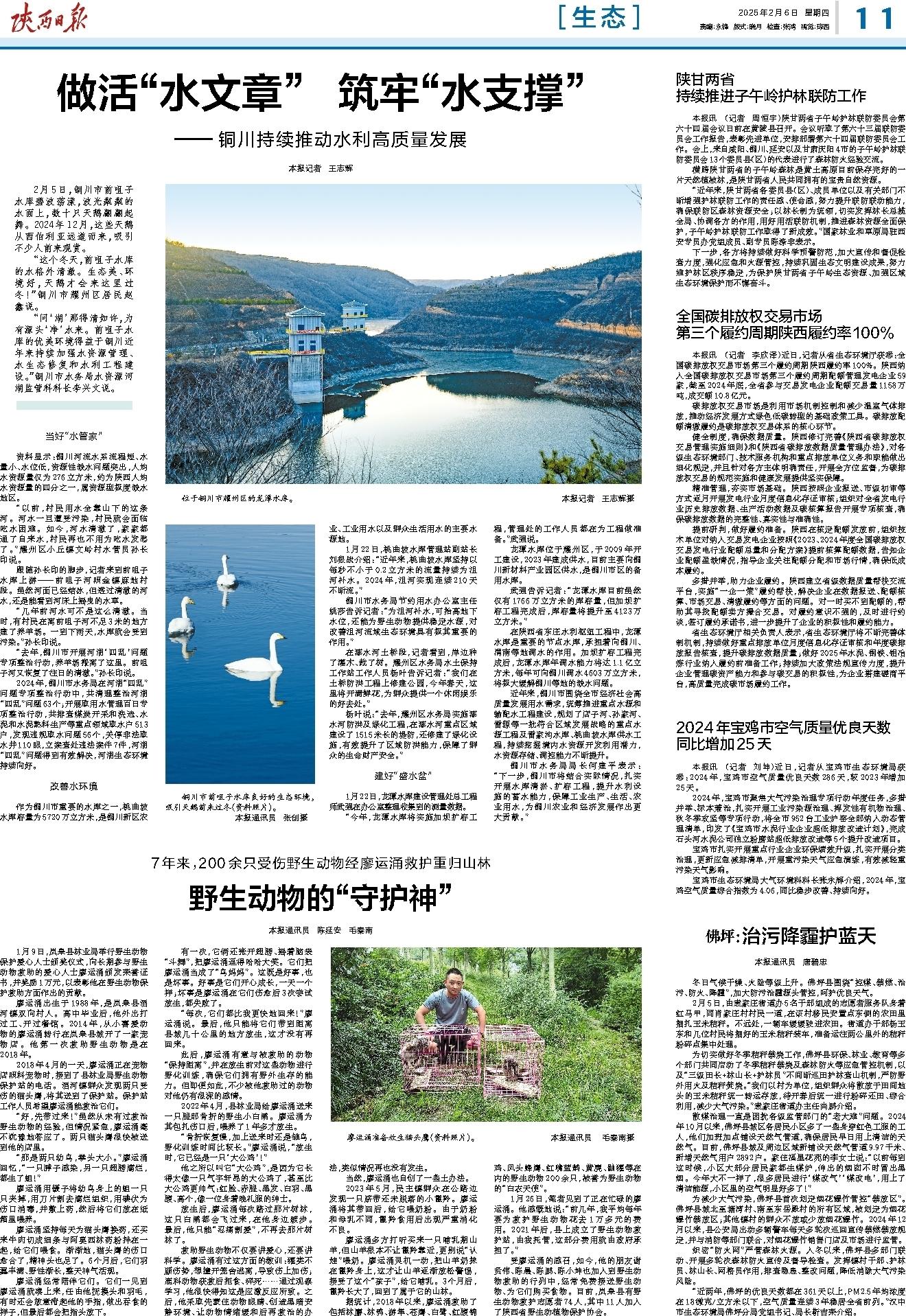 宝鸡市生态环境局大气环境科科长张永辉介绍,2024年,宝鸡空气质量综合指数为4.06,同比稳步改善、持续向好。