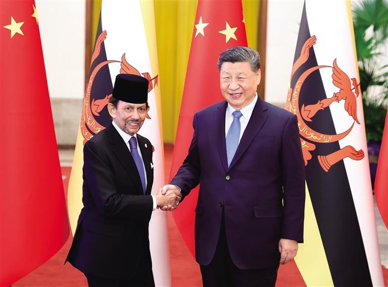 习近平强调,中方愿同文方在国家发展道路上携手前行,为两国人民带来更多福祉。双方要加强共建“一带一路”倡议同文莱“2035宏愿”战略对接,推进广西—文莱经济走廊、恒逸石化两个旗舰项目,打造中国—东盟东部增长区和“陆海新通道”双枢纽。中方愿鼓励更多企业赴文莱投资兴业,支持文莱发展数字经济、人工智能、新能源产业,助力文方经济多元化。中方支持两国开展杂交水稻研究合作,欢迎文方用好中国国际进口博览会、中国—东盟博览会等平台,扩大优质农渔产品对华出口。双方要弘扬人文交流优良传统,深化教育、文化、旅游、地方、体育交流合作,共同推动平等有序的世界多极化、普惠包容的经济全球化,捍卫国际公平正义,为促进国际和地区和平稳定发挥积极作用。
