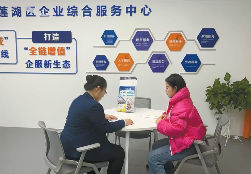 “莲湖区企业综合服务中心是我区加快实施政务服务增值化改革的重要载体。作为一站式集成的综合平台,莲湖区企业综合服务中心设有投资、项目、政策、金融、法律、人才、科创、兜底8个服务板块,可为企业提供115项增值服务。”莲湖区企业综合服务中心首席服务专员张超介绍。