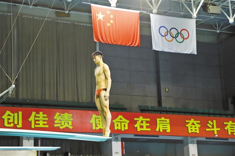 1月21日,在跳水测验赛中,我省运动员白钰豪全神贯注,准备起跳(资料照片)。