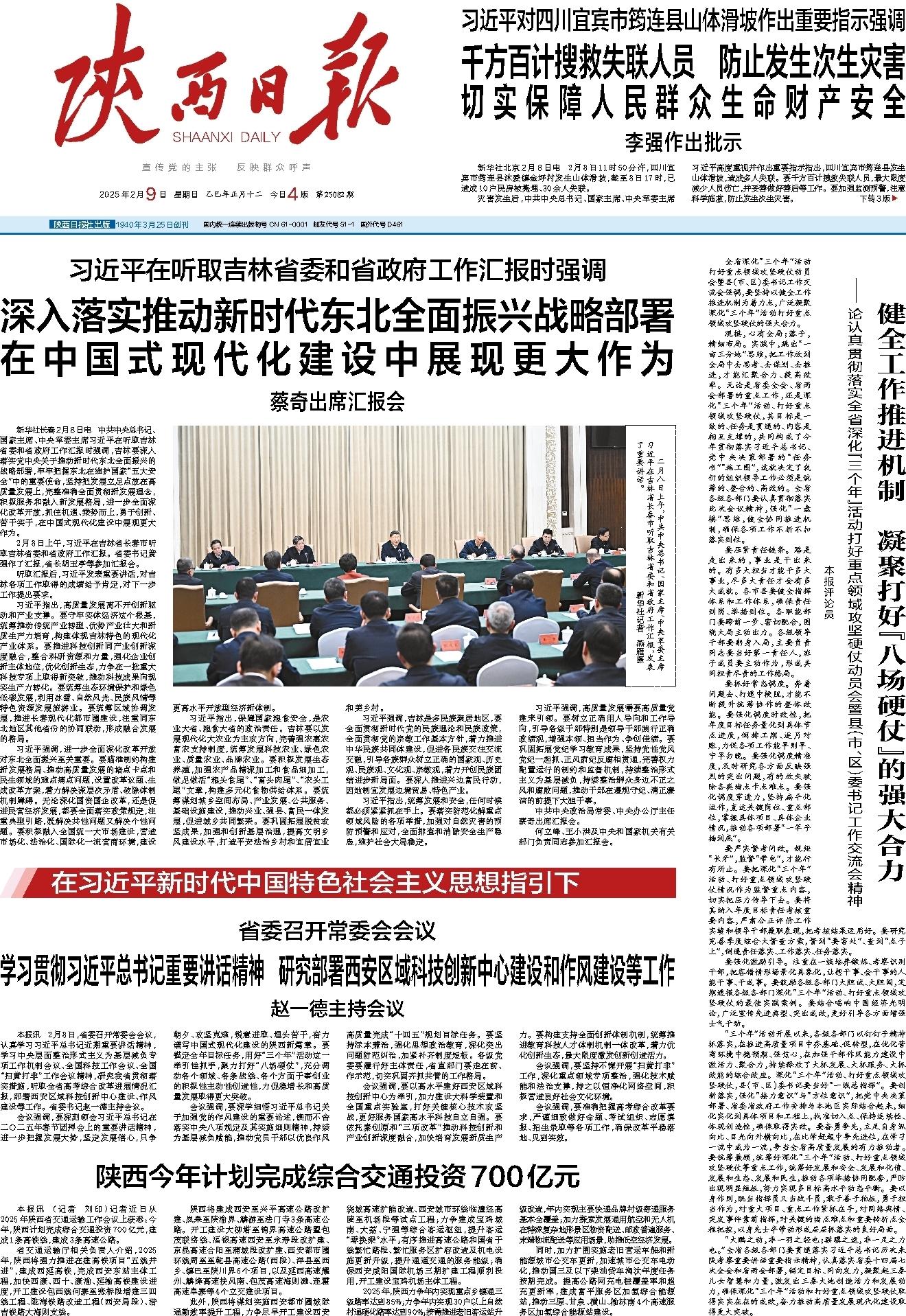 会议强调,要深刻领会习近平总书记在二〇二五年春节团拜会上的重要讲话精神,进一步把握发展大势,坚定发展信心,只争朝夕、攻坚克难,锐意进取、埋头苦干,奋力谱写中国式现代化建设的陕西新篇章。要锚定全年目标任务,用好“三个年”活动这一牵引性抓手,聚力打好“八场硬仗”,充分调动各个领域、各条战线、各个方面干事创业的积极性主动性创造性,力促稳增长和高质量发展取得更大突破。