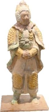 和三彩莲灯侍女俑一同出土的三彩将军俑。
