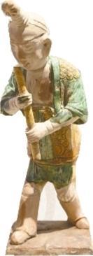 和三彩莲灯侍女俑一同出土的三彩吹篪杂剧俑。
