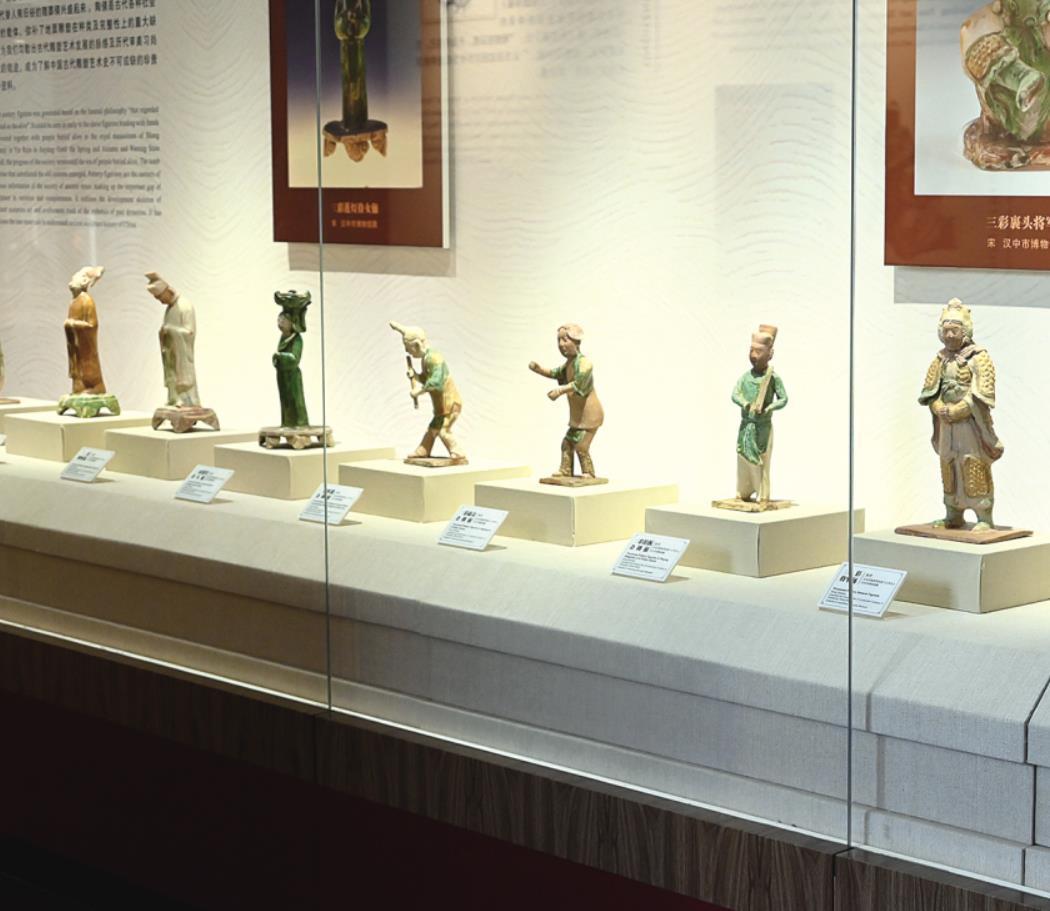 超凡脱俗的三彩莲灯侍女俑、气质儒雅的文吏俑、威风凛凛的将军俑、活泼诙谐的杂剧俑……汉中市博物馆拜将坛馆区整齐地摆放着十几件(套)宋三彩俑。这些俑动作各异、服饰精美、栩栩如生。