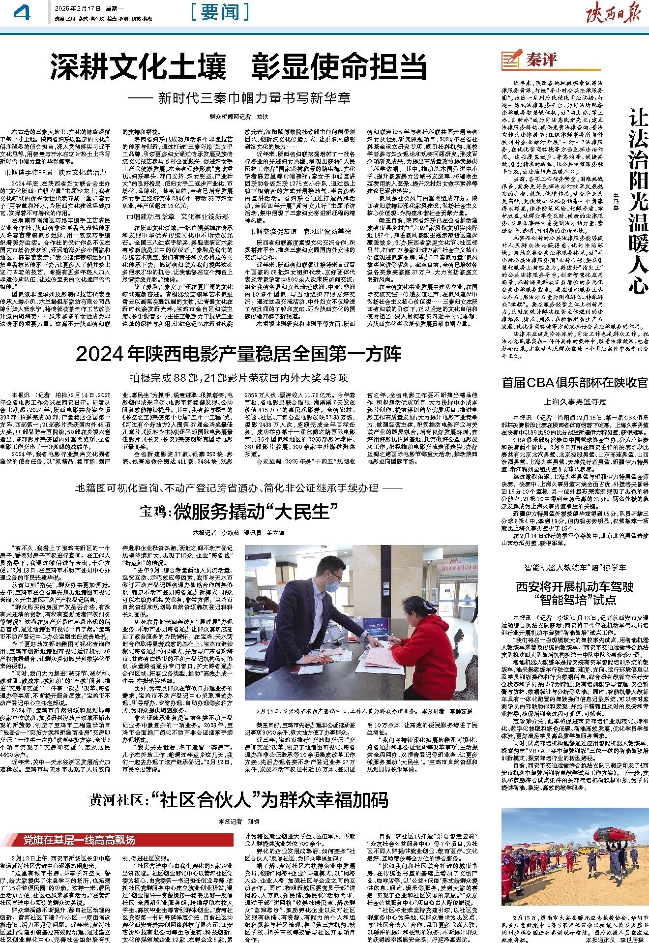 本报讯 (记者 柏桦)2月14日,2025年全省电影工作会议在西安召开。记者从会上获悉:2024年,陕西电影共备案立项392部,拍摄完成88部,产量稳居全国第一方阵、西部第一;21部影片荣获国内外49项大奖,11部登陆全国院线,50部在央视六套播出,多部影片荣获国内外重要奖项,全省电影工作交出了一份亮眼的成绩单。