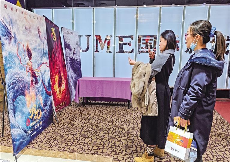 2月16日,在北京市东城区一家影院,观众在《哪吒之魔童闹海》电影海报前驻足。 新华社记者 陈晔华摄