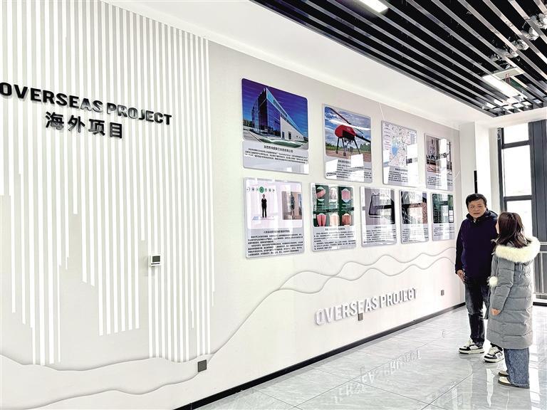 2月17日,在位于咸阳高新区的秦创原咸阳科技企业孵化中心,负责人白佶斌(左)为客商介绍海外项目。