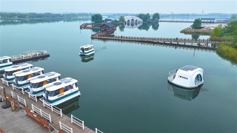 陕西欧卡电子智能科技有限公司在西安昆明池景区测试智能游船“汐”和“漾”(资料照片)。