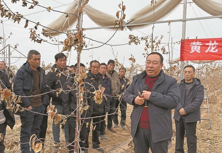 2月19日,黄龙县在三岔镇四条梁村举办春季果园管理技术培训会。 本报通讯员 白杨越摄