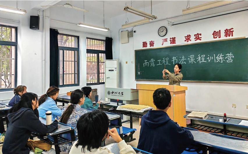 西北大学面向受资助学生开展书法培训活动。 受访单位供图