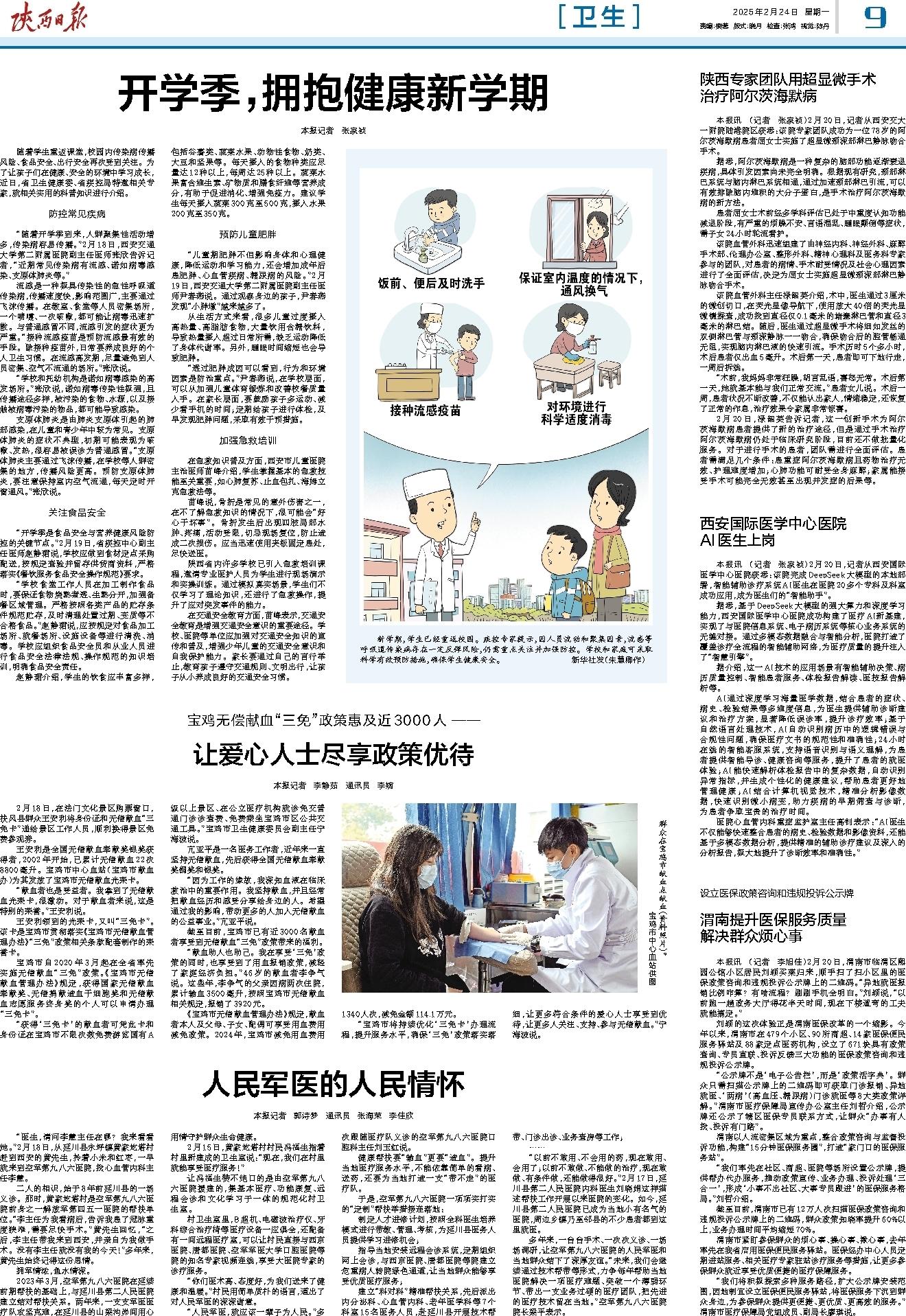 “随着开学季到来,人群聚集性活动增多,传染病容易传播。”2月18日,西安交通大学第二附属医院副主任医师张欣告诉记者,“近期常见传染病有流感、诺如病毒感染、支原体肺炎等。”