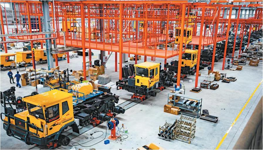 二月十八日拍摄的陕西同力重工股份有限公司生产线。组装完成的矿用车将发往印度尼西亚。 本报记者 肖倩摄