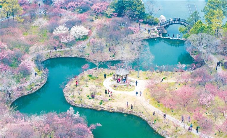 2月24日,游客在江苏扬州瘦西湖风景区赏梅游玩。神州大地春意渐浓,人们拥抱自然,享受春日美好时光。 新华社发(周社根摄)