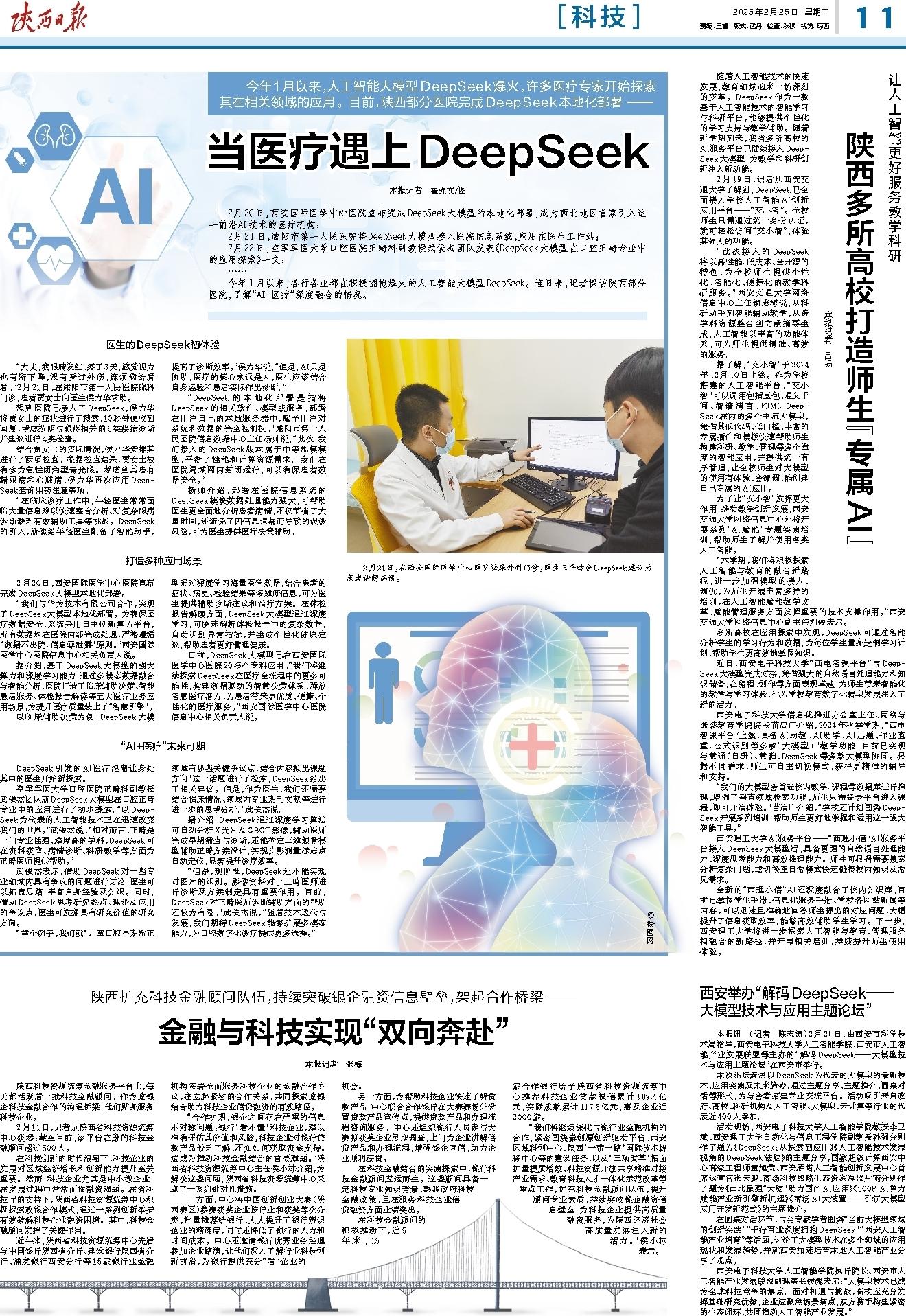 今年1月以来,各行各业都在积极拥抱爆火的人工智能大模型DeepSeek。连日来,记者探访陕西部分医院,了解“AI+医疗”深度融合的情况。