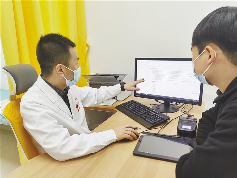 2月21日,在西安国际医学中心医院泌尿外科门诊,医生王平结合DeepSeek建议为患者讲解病情。