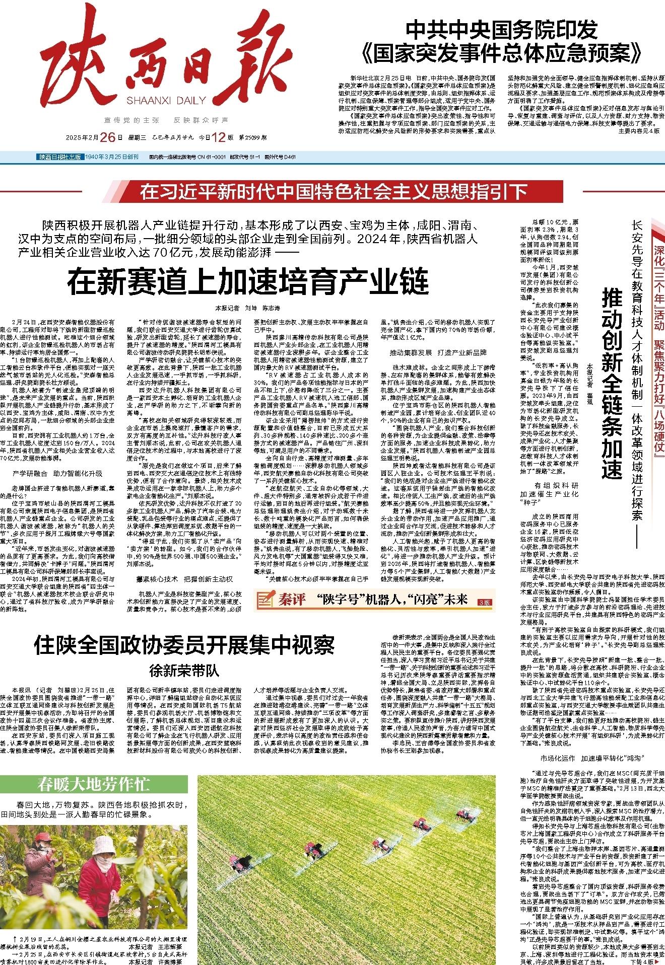机器人被誉为“制造业皇冠顶端的明珠”,是未来产业发展的重点。当前,陕西积极开展机器人产业链提升行动,基本形成了以西安、宝鸡为主体,咸阳、渭南、汉中为支点的空间布局,一批细分领域的头部企业走到全国前列。