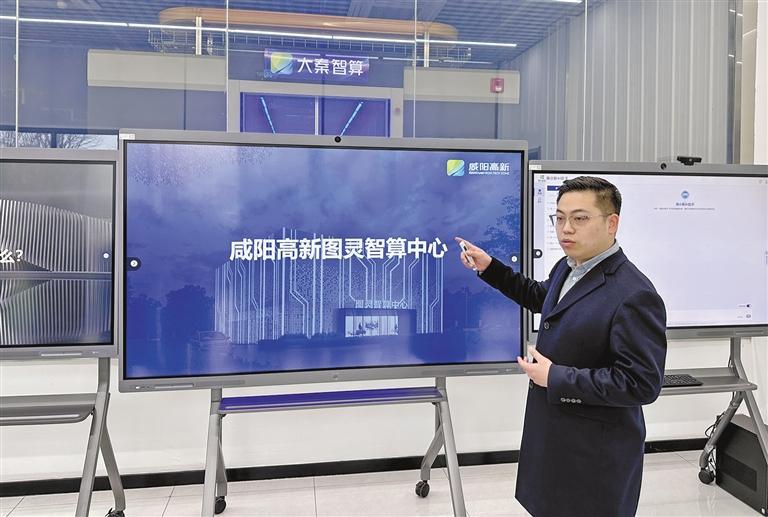 2月21日,在咸阳高新图灵人工智能算力中心,负责人毛昱皓介绍咸阳高新区DeepSeek本地化部署情况。 本报记者 琚鹏飞摄