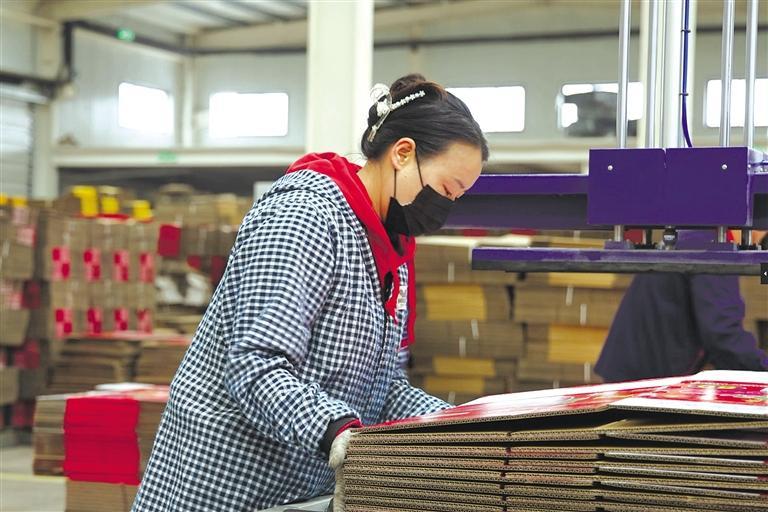 2月25日,在延安四叶农业发展有限公司生产车间,工人在整理纸箱。 本报通讯员 李进摄