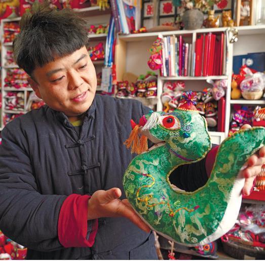 “今年是蛇年,我设计了很多具有蛇元素的刺绣作品。”夏璐璐介绍,如今,随着非遗和旅游业的融合发展,他的刺绣产品在市场上热销。夏璐璐还带动周边26名妇女和残疾人就业,帮助3家合作社开发刺绣新工艺。