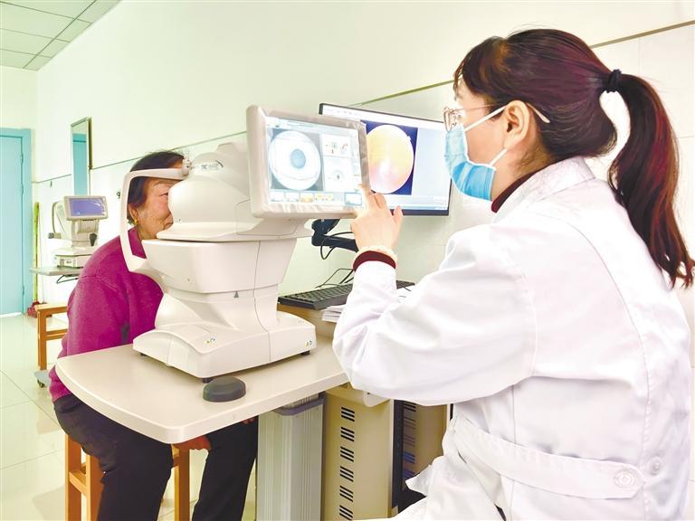 2月25日,在麟游县医院体检中心,医生用新引进的眼底照相机为群众做检查。 本报记者 李静茹摄