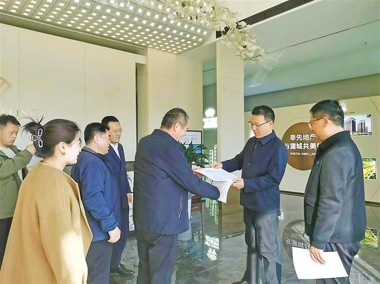 2024年12月3日,蒲城县行政审批服务局工作人员上门为民营企业送证、送政策(资料照片)。 受访单位供图