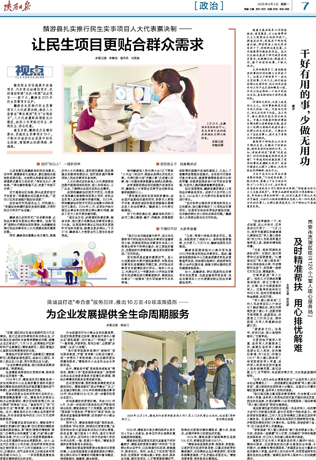 高陵区不仅为军人军属和退役军人提供个性化、精细化服务,还定期组织他们参与基层社会治理、乡村振兴、环境整治等志愿服务。“希望更多社会力量参与到关爱军人军属、退役军人的行动中来,共同营造拥军优属的良好社会氛围。”高陵区退役军人服务中心主任尉蔚表示。