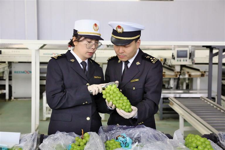 这批水果来自陕西新禧农业发展有限公司。公司负责人王小永说:“得知我们要出口一批葡萄,渭南海关不仅送政策上门,向我们详细讲解葡萄出口哈萨克斯坦检验检疫要求,还开辟鲜活易腐农产品属地查检‘绿色通道’,帮助公司葡萄快速出口。”