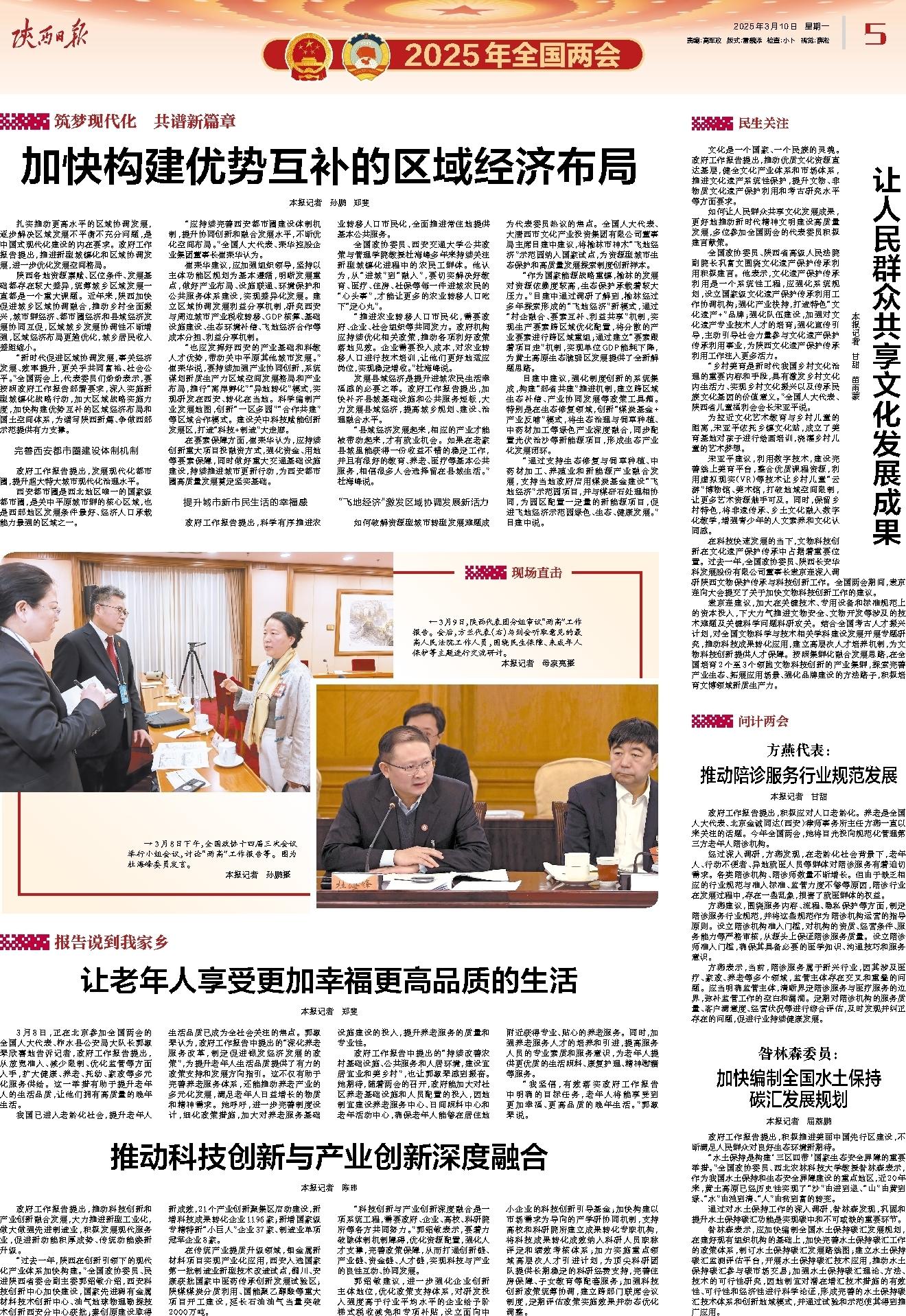 “新时代促进区域协调发展,事关经济发展、效率提升,更关乎共同富裕、社会公平。”全国两会上,代表委员们纷纷表示,要按照政府工作报告部署要求,深入实施新型城镇化战略行动,加大区域战略实施力度,加快构建优势互补的区域经济布局和国土空间体系,为谱写陕西新篇、争做西部示范提供有力支撑。