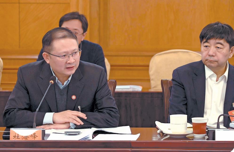 3月8日下午,全国政协十四届三次会议举行小组会议,讨论“两高”工作报告等。图为杜海峰委员发言。 本报记者 孙鹏摄