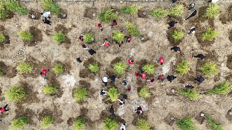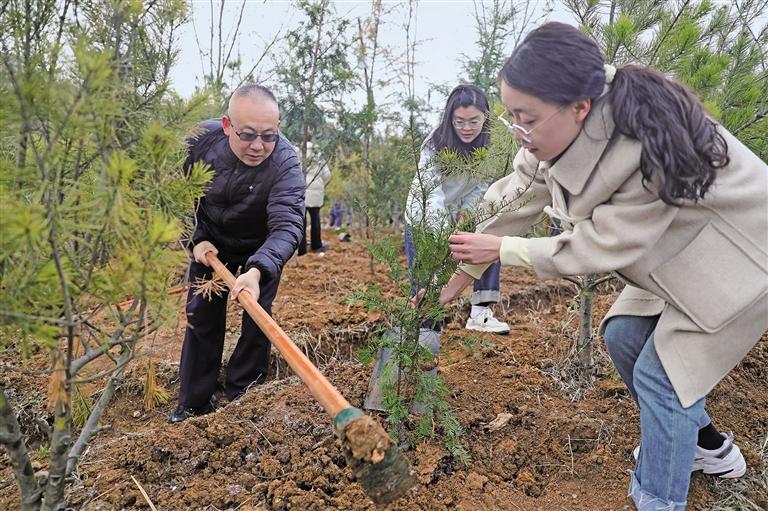 3月12日,在西安市临潼区仁宗街道,400余名党员干部和志愿者开展义务植树活动,为春天增绿添彩。 本报通讯员 王三合摄