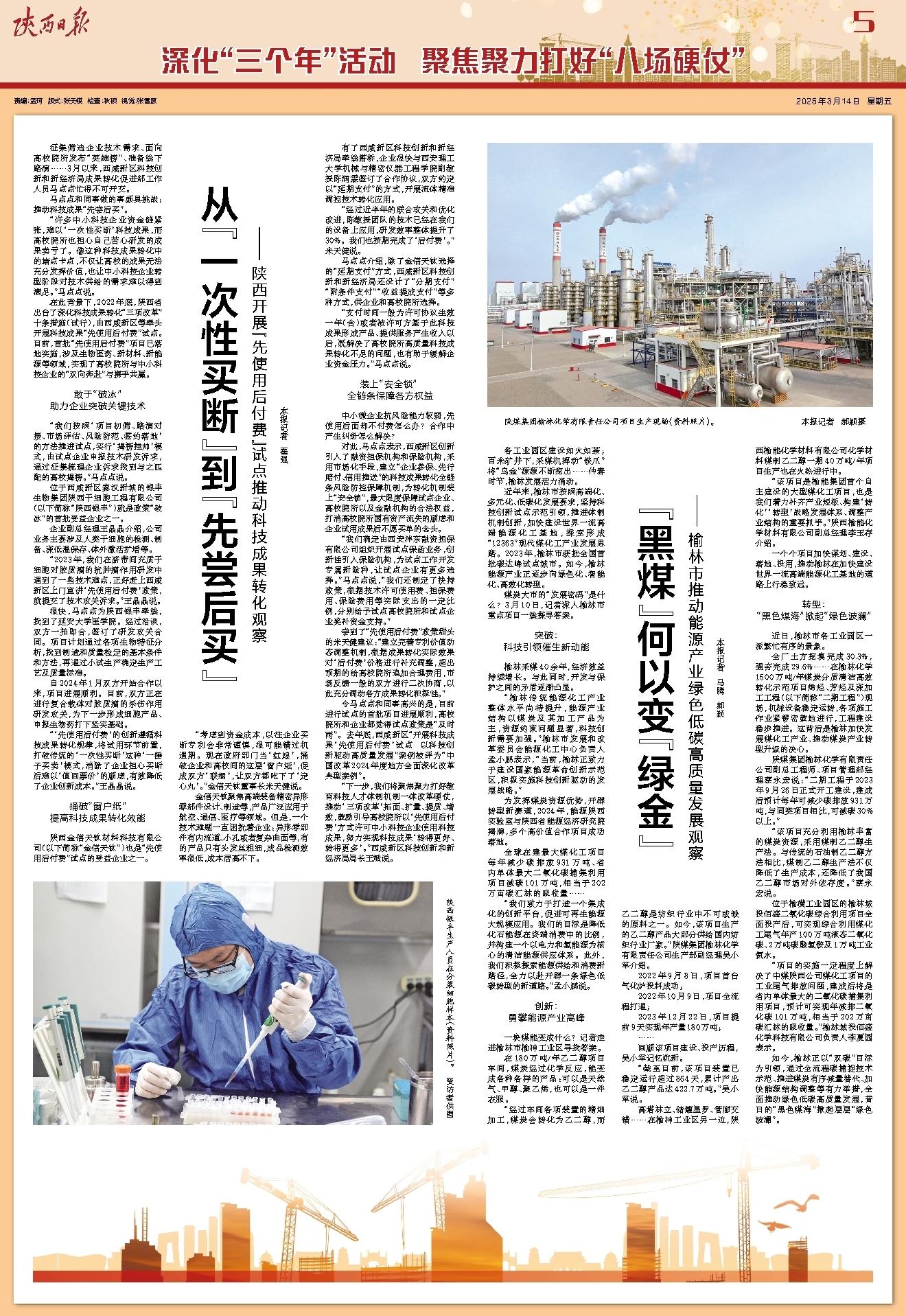 令马点点和同事高兴的是,目前进行试点的首批项目进展顺利,高校院所和企业都觉得试点政策是“及时雨”。去年底,西咸新区“开展科技成果‘先使用后付费’试点 以科技创新驱动高质量发展”案例被评为“中国改革2024年度地方全面深化改革典型案例”。