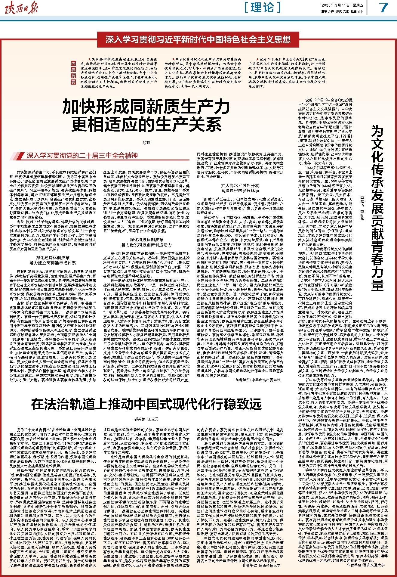 将中华优秀传统文化融入思政教学改革创新。要以努力培养更多让党放心、爱国奉献、担当民族复兴重任的时代新人为目标,让中华优秀传统文化、革命文化和社会主义先进文化深度融入大学生思政课教学。要结合高校的学科特点和学术力量,组织文学、语言、历史、地理、考古等专业教师,深入进行中华优秀传统文化的课程讲授、内容研发、互动交流,做好经典著作的解读、阐释、翻译工作,增强针对性、趣味性、时代性,让大学生想听、爱听,听得懂、听得好、有收获。要采取经典诵读、文化活动、社会实践等多种形式,鼓励青年学生深入了解中华优秀传统文化的精髓和内涵,激发爱国热情、民族自豪感和文化自信心。要在高校师生的教育教学评价体系中加强对中华优秀传统文化素养修习的考核,完善育人评价导向机制,将文化传承创新能力纳入人才培养质量评估体系,在学术评价、学分设置、职业发展等方面予以鼓励,推动师生在知识传授、学术研究、社会服务中,实现传统文化教育从知识层面向价值层面、从课程体系向育人体系的系统性跃升。要举办更多弘扬中华优秀传统文化的社团活动和比赛,营造热爱学习中华优秀传统文化的氛围,促使学习践行中华优秀传统文化在高校师生中蔚然成风,培养本领高强、道德优良的优秀人才队伍,共同担负起新的文化使命。