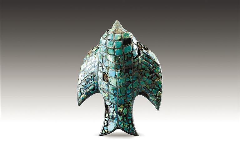 清涧寨沟遗址出土的燕形镶绿松石铜带扣(资料照片)。