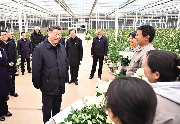 19日下午,习近平来到丽江现代花卉产业园。在展厅,他察看玫瑰、马蹄莲鲜切花品种展示,听取云南花卉产业发展情况介绍。在玫瑰花种植区,他了解智能温室无土栽培技术,同现场村民、技术人员亲切交谈。他还来到玫瑰花分级包装生产线,察看筛选、分级到包装、发货的全流程,对鲜切花通过物流及时外销表示肯定。习近平指出,云南花卉产业前景广阔,要着眼全产业链,从种业端、种植端、市场端不断深耕细作,让这一“美丽产业”成为造福群众的“幸福产业”。