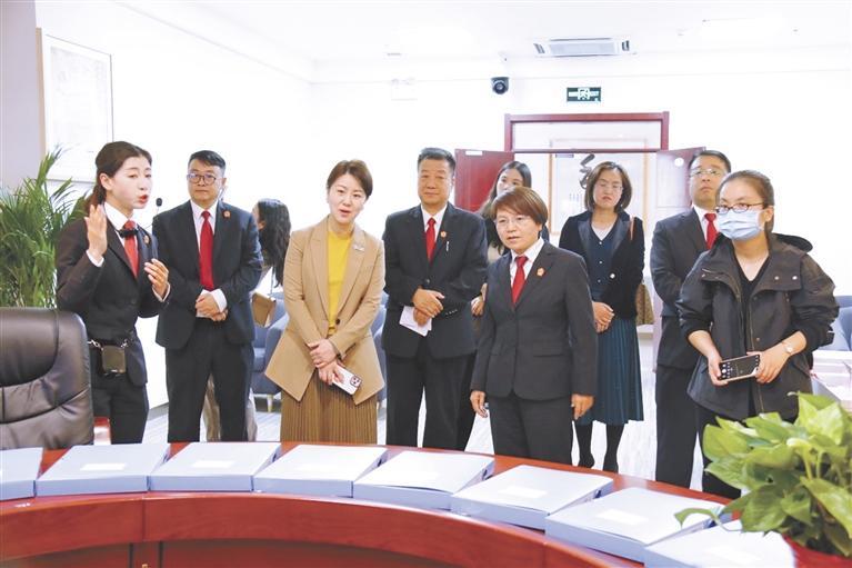 2023年3月29日,刘洁(右七)一行到鄠邑区法院调研(资料照片)。 受访者供图