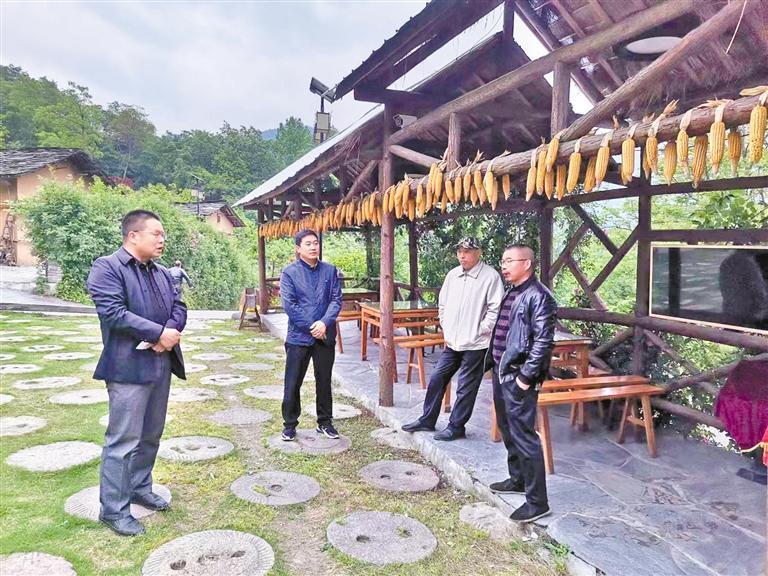 3月17日,白河县卡子镇陈庄社区第一书记田远文(左二)在辖区农家乐走访。 本报通讯员 郎海侠摄