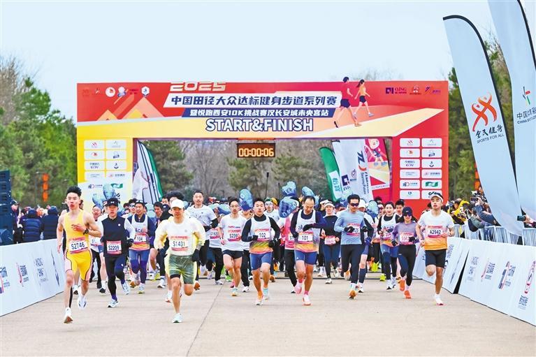 2月23日,中国田径大众达标健身步道系列赛暨悦跑西安10K挑战赛在汉长安城未央宫国家考古遗址公园拉开大幕,吸引千余名跑步爱好者参加。