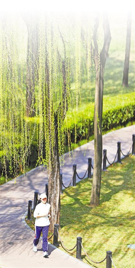 沐浴春光,享受跑步乐趣。每一个清晨和傍晚,西安大明宫国家遗址公园里,都有跑者奔跑在健身步道上。