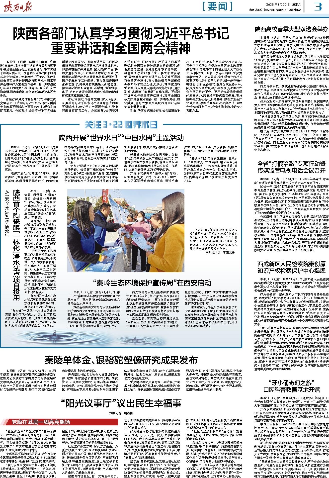 本报讯 (记者 苏怡)3月21日,第十二个“秦岭生态环境保护宣传周”暨“世界水日”“中国水周”宣传活动启动仪式在黑河金盆水库举行。